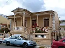 The Casa Paoli was built c. 1864 and is located on 2648 Calle Mayor,[27] Barrio Cuarto in Ponce. It is nationally significant as the birthplace of Antonio Paoli Marcano, who became an internationally acclaimed tenor and opera singer. He performed and was widely praised in Europe and the Americas, including Caribbean islands. The house had been a wedding gift for Paoli's parents, who married at the Ponce Cathedral after the birth of the first five of their eight children. (His maternal grandfather had initially opposed the marriage because his daughter was much wealthier than Paoli's immigrant Corsican father. The couple eloped together.) Antonio, their seventh child, was born in this house, as were two of his siblings.[28] In 2009, Casa Paoli was included in the National Register of Historic Places.