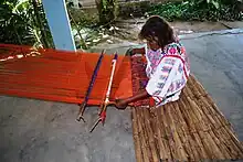 There is important traditional textile production among the Amuzgos, along with ceramics, leather, cheese and piloncillo. Most surplus products are sold in Ometepec. Traditional weaving is done on a backstrap loom, and girls learn the process starting from when they are about six or seven years old. The most traditional garments are made from a local cotton called coyuche, which is grown, cleaned, spun, dyed then woven. The most notable and time-consuming garment is the women's huipil, which has, at times, very complicated designs woven into it. A number of Amuzgo weavers have been recognized for their work, including Florentina López de Jesús. Many Amuzgos in Guerrero still wear traditional garments, with men wearing loose white cotton pants and shirt and the women wearing a huipil and dress. However, those made with commercial cloth are becoming more common.[3]