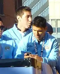 Pantilimon (left) with Sergio Agüero on Manchester City's Premier League victory parade, May 2012