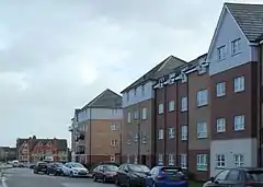 The area to the east of the original Cotton End is shown on the old Ordnance Survey map as having some industrial units close to the south bank of the river with a goods shed, other railway works and a pub and offices fronting the main road. This area was also referred to as Cotton End and became entirely industrial with removal of the railway sidings. During the 1990s part of this site fronting the river was also developed as housing off a new road called New South Bridge Road as the Old Towcester Road industrial development was out of date. Part of the site next to the river was occupied by a large iron foundry, Rice & Co, which was on the site from 1928-1997.[3]