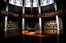 The Hall of Fame Rotunda features a mural, The Sources of Country Music, by Thomas Hart Benton. It was Benton's final work; as he died in his studio while completing it.[6]