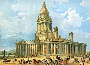An early focus of the new authority was on policing and crime, with construction of a new borough prison begun in 1842. The Leeds Improvement Act 1842 (5 & 6 Vict. c. civ) gave the council further powers over markets, streets, street lighting, sewerage, building regulations, public cleansing and smoke regulation in the rapidly growing industrial city.[12]