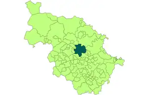 The County Borough of Leeds, and its predecessor, the Municipal Borough of Leeds, was a local government district in the West Riding of Yorkshire, England, from 1835 to 1974.[2] Its origin was the ancient borough of Leeds, which was reformed by the Municipal Corporations Act 1835. In 1889, when West Riding County Council was formed, Leeds became a county borough outside the administrative county of the West Riding; and in 1893 the borough gained city status. The borough was extended a number of times, expanding from 21,593 acres (8,738 ha) in 1911 to 40,612 acres (16,435 ha) in 1961; adding in stages the former area of Roundhay, Seacroft, Shadwell and Middleton parishes and gaining other parts of adjacent districts. In 1971 Leeds was the fifth largest county borough by population in England. The county borough was abolished in 1974 and replaced with the larger City of Leeds, a metropolitan district of West Yorkshire.