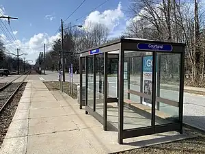 Courtland station is a stop on the RTA light rail Green Line in Shaker Heights, Ohio, located in the median of Shaker Boulevard (Ohio State Route 87) at its intersection with Courtland Boulevard, after which the station is named.