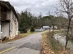 The Cowee–West's Mill Historic District encompasses an area of Macon County, North Carolina, which has historic significance predating the arrival of European settlers, and extending into the 20th century. It is located about 6 miles (9.7 km) north of Franklin, the county seat, along either side of Cowee Creek as it flows toward the Little Tennessee River. The district includes the archaeological site and platform mound of the Cherokee town of Cowee, a major settlement until the time of the American Revolutionary War. In the first half of the 19th century the area was developed as a mining community centered on a mill operated by the West family, and after the American Civil War it became one of a small number of rural African-American communities in western North Carolina. The core of the West's Mill area is centered on the junctions of SR 1350, SR 1341, SR 1340, and West's Mill Road, and North Carolina Route 28 is the major road passing through the district. Its northern and southern bounds are roughly where the valley floor gives way to hills on either side of Cowee Creek, ending in the west at Hall Mountain and in the east at the mouth of Caler Creek.[2]