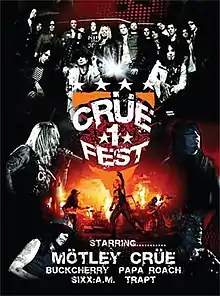 Crüe Fest was a summer 2008 tour by Mötley Crüe, which commenced on July 1, 2008 and concluded on August 31, 2008. It featured Mötley Crüe themselves, Buckcherry, Papa Roach, Sixx:A.M., and Trapt. Crüe Fest was said to be "the Loudest Show on Earth". The tour earned around $40 million and was the most successful, most popular festival of the summer.[1]