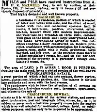 10. "Advertising: For sale 'Craigieburn' Estate". Robertson Advocate. 31 December 1909. p. 3. Retrieved 22 June 2020 via Trove.