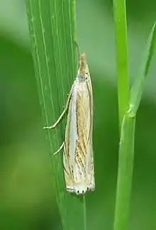 Crambus saltuellus, the pasture grass-veneer, is a moth in the family Crambidae. It was described by Philipp Christoph Zeller in 1863.[1] It is found in North America, where it has been recorded from the north-eastern United States south to North Carolina. It is also present in southern Ontario.