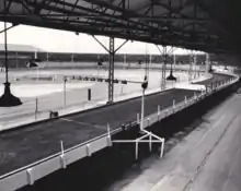 In 1930 the Bexleyheath and District Motorcycle Club started making plans for a grass speedway track on land known as the Crayford Fairfield that had hosted travelling fairs for a reported 500 years.[1] The first speedway meeting was held in the spring of 1930 but the following season (1931) it was decided to postpone any further speedway meetings due to the work involved in organising them. A company called Wilson Greyhound Racing Track Ltd stepped in and built a 450-yard circuit around the grass track and racing duly opened on Easter Monday 1932. Speedway returned in 1932 with a new cinder track inside the dog track and it was known as the Crayford Speedway Stadium until 1937.