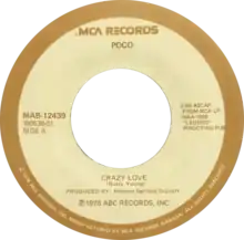 "Crazy Love" is a 1979 hit single for the country rock group Poco introduced on the 1978 album Legend; written by founding group member Rusty Young, "Crazy Love" was the first single by Poco to reach the Top 40 and remained the group's biggest hit, with a special impact as an Adult Contemporary hit, being ranked by Billboard as the #1 AC song for the year 1979.[3][4]