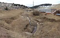 It receives the outflow of the Roosevelt Tunnel, a drainage tunnel that lowered the water table by 1,500 feet throughout the Cripple Creek gold mining district.[4]