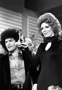 ![]() Malgioglio (left) with Iva Zanicchi in 1974 | |