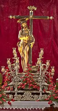 The sculpture is attributed to the sculptor Domingo de Rioja and is one of the most revered religious images of the Canary Islands, in fact, is the representation of Jesus Christ most revered and famous of the Canary Islands, after the image of Cristo de La Laguna.[1] The image came to Tenerife from Madrid in 1661, was brought to the island by Tomás Perera de Castro. The sculpture was not liked by the inquisitors of the islands, as the iconography of Christ conformed to the Passion of Christ as told in the Bible.[2]