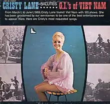 Cristy Lane Salutes G.I.'s of Viet Nam is a studio album by American country and Christian artist Cristy Lane. It was released in 1969 via Lane Records and contained a total of 13 tracks. The album was Lane's debut studio album in her recording career and featured songs Lane performed during concert tour entertaining troops during the Vietnam War.