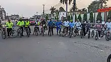 Critical Mass has been described as "monthly political-protest rides", and characterized as being part of a social movement.[3] It has been described as a "monthly protest by cyclists reclaiming the streets."[4] Participants have insisted that these events should be viewed as "celebrations" and spontaneous gatherings, and not as protests or organized demonstrations.[5][6] This stance allows Critical Mass to argue a legal position that its events can occur without advance notification of local police.[7][8] Though they are sometimes described as political, they are not necessarily.