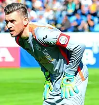In July 2006, prior to Euro 2008, Kranjčar was replaced with Slaven Bilić, who introduced newer, younger players to the squad and finished qualifying undefeated.[57][58] His first game was a 2–0 victory against reigning world champions Italy during an international friendly.[59][60] Croatia lost once to Macedonia and beat England twice, who as a result failed to qualify for the first time since 1984.[61][62] Eduardo da Silva, the team's top goalscorer during qualifying, sustained an injury while playing for his club, Arsenal, leading to a shake-up in the finals squad with less experienced players.[63][64] Croatia finished group stage undefeated with a 1–0 win over co-hosts Austria, 2–1 win over Germany, and 1–0 win over Poland.[65] The team collected the maximum group stage points possible (9) for the first time in their Euros history.[66][67][68] Niko Kovač and Dario Šimić held captaincy during the group and knockout stages, respectively.[69][70] Croatia pushed Turkey to a penalty shoot-out in the quarter-finals in which the Turkish side prevailed in an upset win[71] where Luka Modrić, Mladen Petrić and Ivan Rakitić all missed their penalties.[72] Croatia set multiple Euro records: fewest goals conceded (2), fewest games lost (0),[lower-alpha 3] and earliest goal scored.[73][74][75]