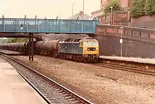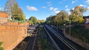 Goods traffic ceased here in June 1964 and the fast lines were removed by the end of the decade. The platform canopies and buildings were demolished in stages in the 1970s, leaving only basic shelters in place. The old lattice footbridge linking the platforms was also demolished in 2007 after being disused and blocked off for several years.[2]