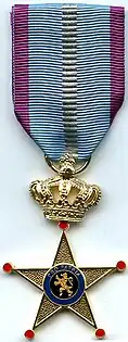 The Cross of Honour for Military Service Abroad (Dutch: Erekruis voor Militaire Dienst in het Buitenland, French: Croix d'Honneur pour Service Militaire à l'Étranger) is a Belgian military decoration originally established for award to Belgian servicemen who served for a long period of time in the Federal Republic of Germany, Zaire (now Congo), Rwanda or Burundi. It was established on 16 June 1997 in three classes.