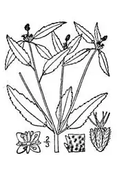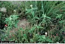 Croton glandulosus is a species of plant in the family Euphorbiaceae that has many common names such as vente conmigo, tooth-leaved croton, tropic croton and sand croton.[1] The species's specific epithet, glandulosus, is due to the gland-like structures that appear at the end of the leaf stalk. C. glandulosus and various other species are found to be common weeds in gardens, crops, and lawns.[2][3] This species in particular is highly problematic in crops such as cotton and peanuts in the Southeastern United States.[2][4]