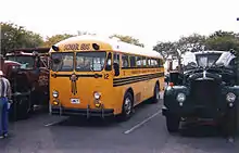 In 1932, Crown Motor Carriage Company built its first complete school bus, in a shift from building bus bodies on cowled truck chassis.[1] Externally modeled after Twin Coach body designs,[2] the school bus body used a front-engine layout, with the Waukesha gasoline engine positioned next to the driver.[1] The body was of all-metal construction with an integrated chassis and safety glass;[2][3] for braking, in addition to the standard hydraulic service brakes, the Crown bus was equipped with a redundant hand-operated system alongside the standard parking/emergency brake.[1]