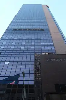 The hotel saw decreases in visitation following the September 11 attacks in 2001.[70][71] Around the same time, the area evolved into a business district and there was growing demand for meeting space, as well as numerous new restaurants. Consequently, the Crowne Plaza closed two of its restaurants and replaced them with a ballroom.[72] The Hershey Company announced plans to open a ground-level store and add a 15-story billboard in 2002.[73] The City Investment Fund, a joint venture between Morgan Stanley Real Estate and Fisher Brothers, acquired the Crowne Plaza in 2006 for $362 million.[74][75] By then, rising room rates had led to decreases in visitation.[76] Two years later, the hotel conducted an $85 million renovation on its lobby, restaurants, guest rooms, and meeting space.[26] The renovation was conducted in stages, with the hotel remaining open throughout.[77] The renovation was finished in 2009,[77][78] and the Brasserie 1605 restaurant opened that April.[79] After the renovation was completed, the Crowne Plaza saw a lower occupancy rate than other hotels, in part because of decreased tourism.[77]