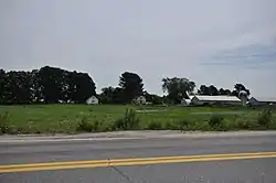 Crystal Spring Farm is located in a rural area of southwestern Brunswick, its building complex set southeast of the junction of Pleasant Hill and Woodside Roads. The associated farmland consists of two large parcels south of Pleasant Hill Road and on either side of Woodside. The land is predominantly open fields, with some woodlots. The farm complex includes ten buildings, organized roughly in a U shape, with the main house at the eastern end. The house is a 19th-century agglomeration of several residential structures that have been stitched together. To its northwest stands an early 20th-century slaughterhouse. The remaining buildings all date to a building program prompted by a fire in 1946 that destroyed the rest of the original complex. These buildings include concrete barns for housing dairy cattle and processing their milk, a Quonset hut for the storage of hay, equipment sheds and workshops, and a silo.[2]