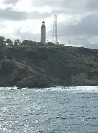 Eastpoint Lighthouse at Ragged Point. View from the northern end of Cobblers Reef.