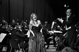 Merita Juniku was born in 1960 in Pristina and attended the music school there to continue later with her studies at the faculty of music. After a growing interest in opera she continued her studies at the Academy of music in Zagreb and graduated in 1990. Her first performance was "Troubadours" by Verdi. Some examples of the operas she has sung are: "Norma" by Bellini, "Aida" by Verdi, Die Walküre by Richard Wagner, Nabucco by Giuseppe Verdi, Un ballo in Maschera by Giuseppe Verdi , Der Zigeunerbaron by Johann Strauss II , Samson and Delilah by Saint-Saëns etc. As of 2006 she is teaching at the University of Pristina and is a permanent member of the Opera of Ljubljana.[30]