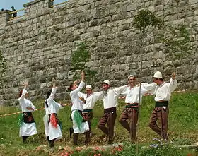 The National Song and Dance Ensemble "Shota" was established in 1948 as one of the first artistic and cultural institutions in Kosovo. For fifteen years this ensemble has operated as a society and afterwards as a semi-professional ensemble. While in March 1964 by decision of the Assembly of Kosovo, "Shota" gained the status of professional ensemble as well as three other ensembles in Yugoslavia, "Llado" – Zagreb, "Kollo" – Belgrade and "Tanec" – Skopje. For the past fifty years, the Ensemble "Shota" has played a crucial role in the preservation, cultivation and development of the Albanian song and dance as well as bringing genuine national cultural values such as authenticity of costumes, authentic melodies and exotic unique dances with which this ensemble is presented in more than 50 countries around the world and in all the continents.[43]