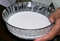 Coconut and curry leaves are common ingredients to most curries.[6] Sanna-Dukra Maas (Sanna idli fluffed with toddy or yeast; Dukra Maas – Pork) is one of the most popular dish of the Mangalorean Catholic community.[7] Rosachi Kadi (Ros Curry), a fish curry made with coconut milk (ros), is a traditional curry served during the Ros ceremony.[8] Patrode, a dish of colocasia leaves stuffed with rice, dal, jaggery, coconut, and spices is also popular.[9] Kuswar are sweet delicacies prepared during Christmas and includes around 22 varieties of sweets.[10] Fish and rice form the staple diet of most Mangalorean Catholics.[11] Par-boiled rice, also known as red rice, is the traditional rice eaten[12] and preferred over raw rice.[11]