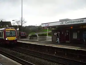 The patronage at Cumbernauld station does not compare well with that of stations in similar towns such as East Kilbride, possibly due to the awkward position on the southeastern periphery of the town, around a 20-minute walk from the town centre.[3] Other residential areas (including Westfield and Balloch) are closer to Croy, while Condorrat and Greenfaulds are served by Greenfaulds railway station. Some areas like the Village or Abronhill are not within reasonable walking distance of a station, although Abronhill is close to the line, which has recently been electrified.
