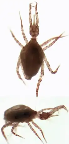 - ↑ Walter, David Evans; Proctor, Heather Coreen (1999). Mites: ecology, evolution, and behaviour. Sydney: University of New South Wales Press. ISBN 978-0-86840-529-2.