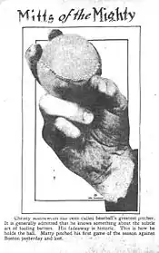 A cut fastball grip from The Day Book in Chicago who credited the pitch to Christy Mathewson.