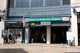 Cutty Sark for Maritime Greenwich is a light metro station on the Docklands Light Railway (DLR) Bank-Lewisham Line in Greenwich, south-east London, so named for its proximity to the Cutty Sark in the Maritime Greenwich district. It is the most central of the Greenwich DLR stations, being situated in Greenwich town centre.