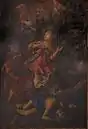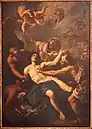 There are two paintings on the side walls of the vestibule by Daniel Seyter, the Martyrdom of St Catherine of Alexandria and the Martyrdom of St Lawrence. The first versions of these were painted by the Viennese artist between 1685 and 1686 using an unusual technique, oil on plaster. The paintings rapidly deteriorated and the best preserved fragments were sent to Massa by the cardinal to his nephew, Duke Carlo II Cybo-Malaspina in 1697. They were substituted with traditional oil paintings on canvas by the same Seiter between 1698 and 1700. The compositions remained similar.[5]