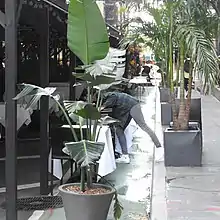 Rules against fastening bikes to subway property, including fences around street stairs, are enforced more rigorously than those concerning lampposts and other street furniture.[80] Municipal bicycle racks are installed in many neighborhoods. Most are of the traditional design, but the city has added larger protected bicycle parking structures in a handful of locations such as near Union Square. More are planned.[81]
