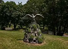 • The Eagle Monument (Cypress Hills Section 2, The Mount of Victory). This unique hand-crafted monument of fieldstones was created by cemetery laborers around 1934. An American eagle, carved in stone was placed atop the stone pyramid.