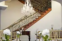 Czech Center Museum Houston's current building was built specifically for the museum inspired by 19th century Czech Villa designs, including baroque-style ornaments, stained glass, and authentic Bohemian crystal chandeliers. The museum consists of three floors, the first two floors, Prague Hall and Brno Gallery which were named after the two most populated cities in the Czech Republic. These halls are used for cultural events featuring local and international artists and musicians. The third floor consists of Pilsen Hall, the museum's main exhibit area, and Comenius Library.[4]