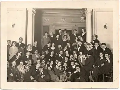 Despite the interruptions of wartime wanderings, Miłosz proved to be an exceptional student with a facility for languages. He ultimately learned Polish, Lithuanian, Russian, English, French, and Hebrew.[23] After graduation from Sigismund Augustus Gymnasium in Wilno, he entered Stefan Batory University in 1929 as a law student. While at university, Miłosz joined a student group called Academic Club of Wilno Wanderers and Intellectuals and a student poetry group called Żagary, along with the young poets Jerzy Zagórski, Teodor Bujnicki, Aleksander Rymkiewicz, Jerzy Putrament, and Józef Maśliński.[24] His first published poems appeared in the university's student magazine in 1930.[25]