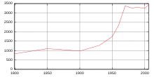 Döttingen has a population (as of December 2020) of 4,244.[7] As of June 2009, 39.1% of the population are foreign nationals.[8] Over the last 10 years (1997–2007) the population has changed at a rate of 5.4%. Most of the population (as of 2000) speaks German (76.2%), with Italian being second most common ( 7.8%) and Albanian being third ( 4.4%).[9]