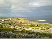 Dún Fearbhaí is located on the eastern edge of Inishmaan, facing back toward Galway Bay.[4]