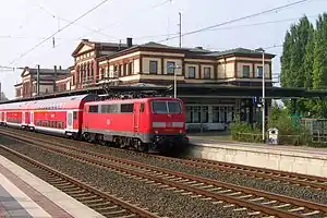 - ↑ Eisenbahnatlas Deutschland (German railway atlas). Schweers + Wall. 2009. pp. 50, 62–63, 140, 145. ISBN 978-3-89494-139-0.
