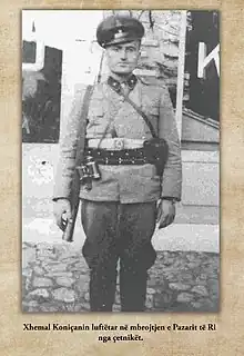 In October 1941, frequent clashes happen between Chetniks and Albanian and Muslim militias. Koničanin's group repelleds Chetnik attack on village of Požega near Novi Pazar.[3] In November Koničanin participated in battle against Chetniks who tried to capture Novi Pazar. Together with forces of Mulla Jakup and Bilall Dreshaj, his forces attacked rear flanks of Chetniks and caused their dismay and retreat.[1] Based on the Hadžiahmetovićs instructions he went to Sjenica to gather additional support in men, arms and ammunition for planned attack on Raška.[4]
