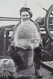 Lillie was the biologist in charge of operations on board the Terra Nova, and collected marine samples by trawling, dredging, and tow-netting. Specimens were collected in waters off the coast of Brazil, the Falkland Islands, the Three Kings Islands, as well as the Ross Sea and McMurdo Sound.[13] With the help of others he collected deep sea organisms including sponges, worms, and fish. Captain Scott and assistant zoologist Apsley Cherry-Garrard both recalled Lillie was especially excited to find specimens of Cephalodiscus, a hemichordate that was rare at the time and whose ancestor was thought to be a link between vertebrates and invertebrates.[14]: 569 [15]: 139 Wilson wrote: "trawling probably caused more excitement and interest in the ship than anything else... and the instant a catch came in-board Lillie was surrounded by an interested group of men, very anxious to see if any startling novelty had at last been dragged up from the bottom."[16]: 405–406 Lillie gave popular lectures on evolution to the crew, which helped break the monotony.[16]: 369 He was also known for his caricatures of the crew, some of which were printed in the South Polar Times, the expedition's magazine.[2]