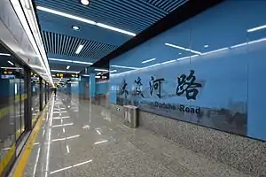 Daduhe Road (Chinese: 大渡河路; pinyin: Dàdùhé Lù) is an interchange station on Line 13 and Line 15 of the Shanghai Metro. It is located in Putuo District.