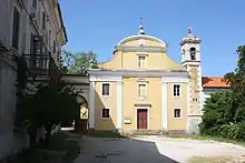 In 1947, as part of the Paris Peace Treaties it was agreed that Yugoslavia will charge the damages inflicted by the Italian military through nationalisation of properties owned by Italian private and legal entities. Thus, the Dajla monastery became state ownership. However, in the Treaty of Osimo in 1975 it was established that the worth of the nationalised properties exceeded the war damages, thus a special Treaty of Rome was signed in 1983 which equalised the differences.[2] In 1999, the Republic of Croatia transferred its ownership of the monastery and its accessory possessions to the Diocese of Poreč-Pula.[3]