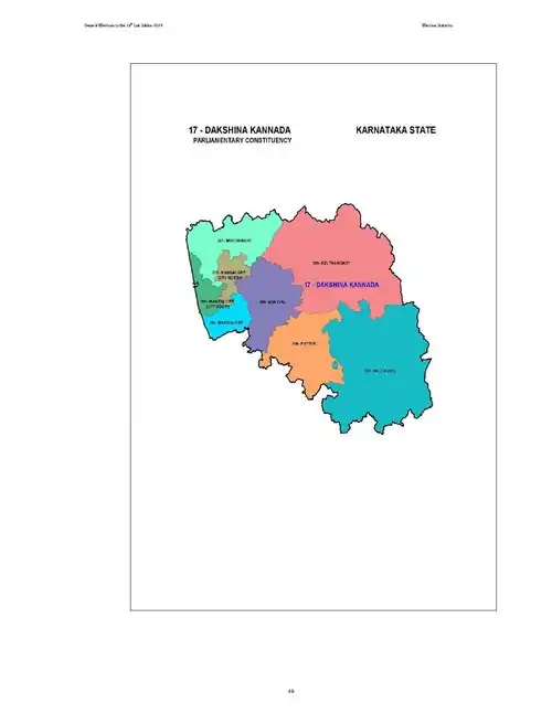 | Assembly constituencies | Belthangady Moodabidri Mangalore City North Mangalore City South Mangalore Bantval Puttur Sullia |