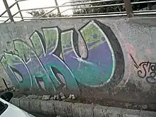 ![]() Graffiti of Daku on footbridge in Goregaon, Mumbai | |