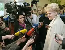 - ↑ "Šampanas iššautas: D.Grybauskaitė be didesnės konkurencijos išrinkta Lietuvos prezidente" (in Lithuanian). Lietuvos rytas. 20 May 2009. Archived from the original on 21 May 2009. Retrieved 20 May 2009.