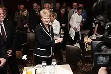 Dalia Grybauskaitė (Lithuanian pronunciation: [dɐˈlʲɛ ɡʲrʲiːbɐʊsˈkɐ̂ˑɪtʲeː]; born 1 March 1956) is a Lithuanian politician who served as the eighth president of Lithuania from 2009 to 2019. She is the first woman to hold the position and in 2014 she became the first President of Lithuania to be reelected for a second consecutive term.[1][2]